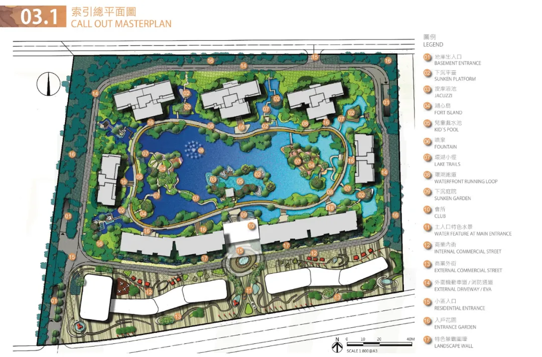 呼應場地東北方向的北湖景觀,整個場地的空間劃分以水為脈,以島為居,通過蜿蜒變化的棧道將分散在水中的島嶼相連,形成一島一世界,一步一美景的水岸島居景觀。景觀設計秉承讓建築、自然、湖景和諧相融的理念,營造島上郁郁蔥蔥。春有百花秋有月,聞之有落英繽紛,端之則繁花似錦,縱享一座城的島居愜意人生。