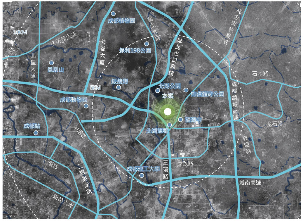 項目地塊位於成都市北部,未來成華區(qū)的副中心——北湖熊貓國際旅遊休閒區(qū),與成都火車站直線距離8.5公里,距成都東站9.5公里,距北湖客運站0.7公里,距離市中心位置10公里,地理位置優(yōu)越,交通便利。