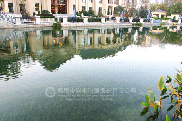 復(fù)地御香山二期景觀湖為新開挖人工湖體。業(yè)主要求通過建立健康、穩(wěn)定、經(jīng)濟的清水型生態(tài)系統(tǒng)來保護湖水水質(zhì),實現(xiàn)長效景觀性。水生態(tài)工程施工時間為2012年3月10日至5月30日。竣工后,復(fù)地御香山二期景觀湖水質(zhì)主要指標達到 《國家地表水環(huán)境質(zhì)量標準》GB3838-2002 Ⅱ 類標準,常年水體透明度在1.7米以上清澈見底,生態(tài)系統(tǒng)健康穩(wěn)定。