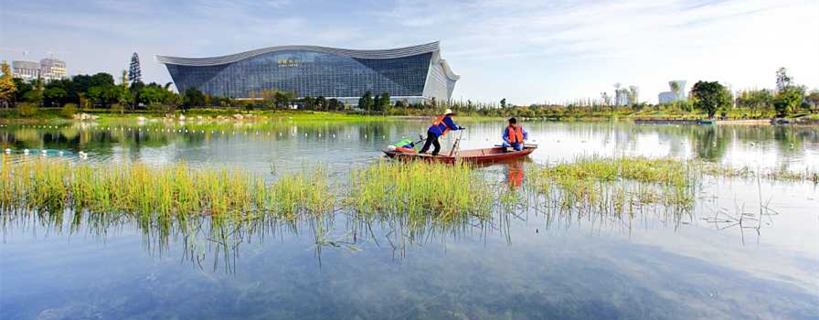 錦城湖3#、4#湖清水型生態(tài)系統(tǒng)構(gòu)建工程位于成都高新區(qū)內(nèi),是成都高新區(qū)投資建設(shè)開發(fā)有限公司打造的198項(xiàng)目,3#、4#湖水面總面積為21.23萬(wàn) m2。3#湖最大水深5.5m,4#湖最大水深3.2m。